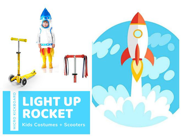 这也是来自于英国品牌Pottery Barn的发光戏服系列。,如果你的孩子对太空、外星人或51区感兴趣,这款服装是最理想的选择。在黄色的micro迷嬉豪华版LED滑板车上发射吧!把手上的彩带装饰能让发射更加飘逸~