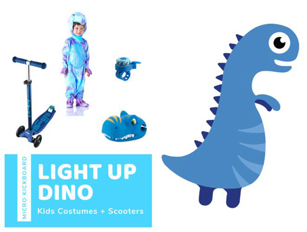 这个会发光的恐龙戏服来自英国品牌Pottery Barn,亮起时和海军蓝的micro迷嬉豪华版滑板车搭配好看极了~准备迎接恐龙的怒吼吧!micro有许多和恐龙相关的饰品,从滑板车的装饰到专用铃铛,都能让你的戏服更出彩。