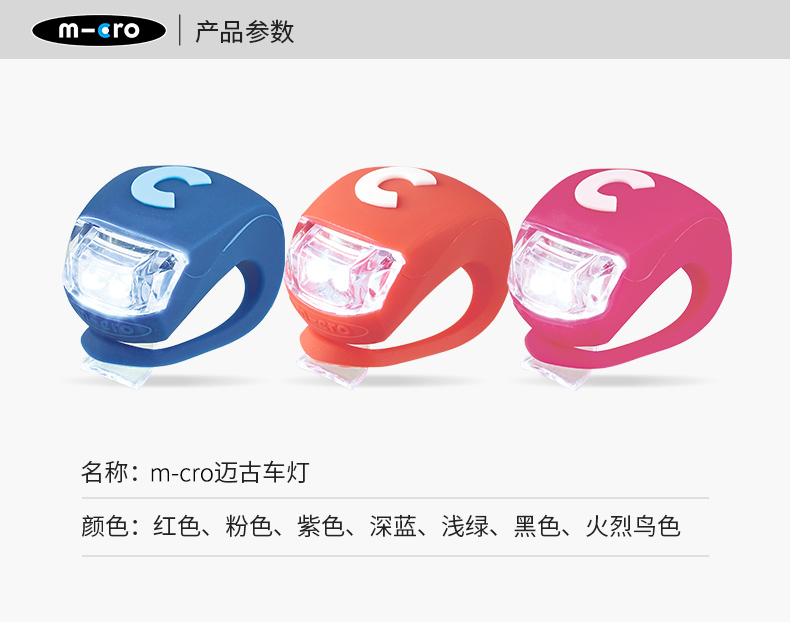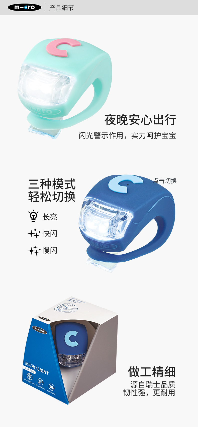 瑞士m-cro迈古儿童滑板车车灯三种闪光模式安全配件多色可选 三种闪光模式切换 保障夜间玩乐安全
