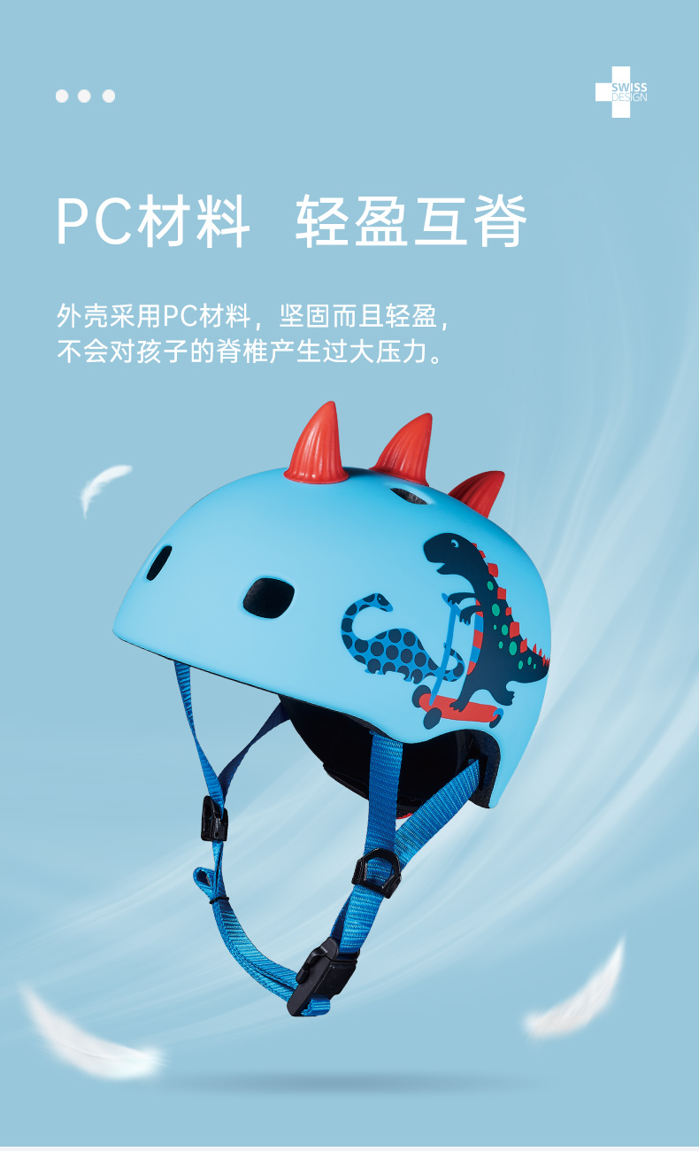 瑞士m-cro迈古儿童滑板车头盔 滑行安全配件 恐龙款