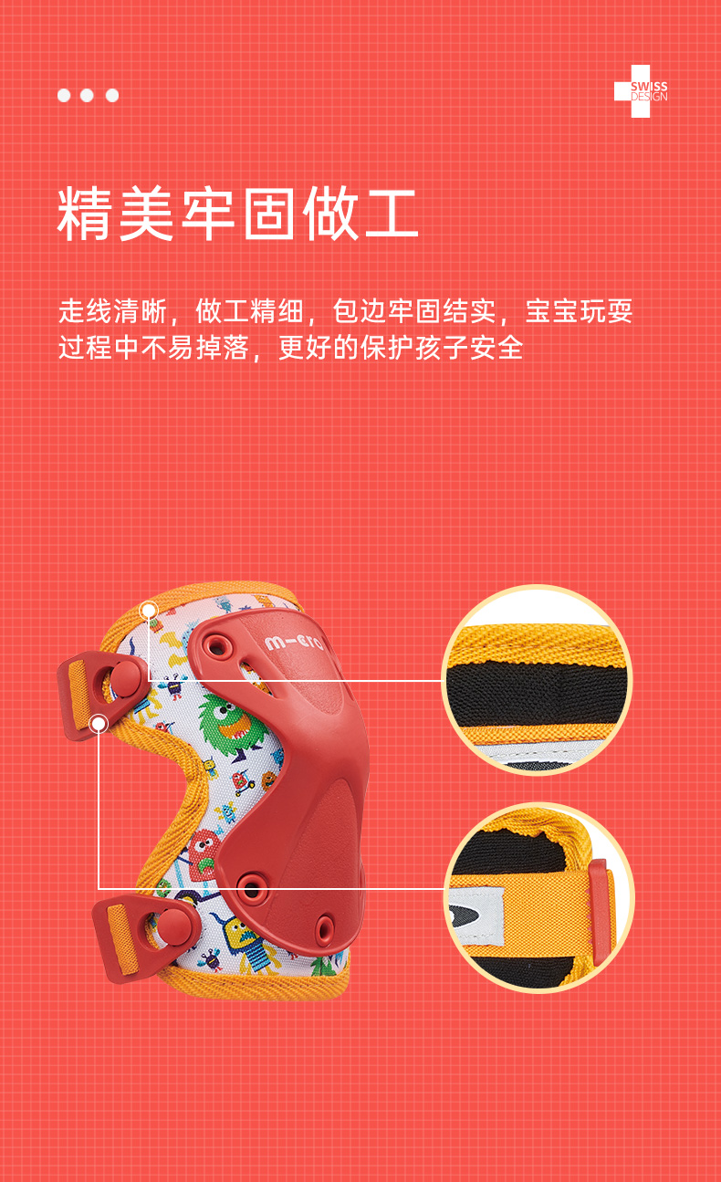 瑞士m-cro迈古儿童护具 滑板车安全配件护膝护肘加厚 自行车装备 护膝护肘加厚