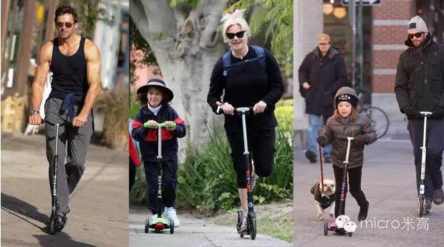 ▲“金刚狼”杰克曼一家钟爱micro米高滑板车