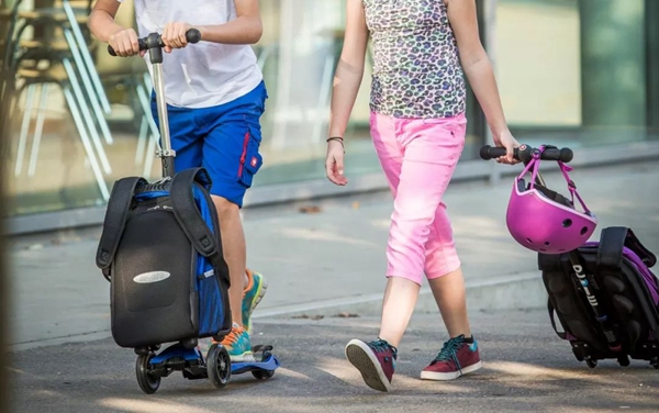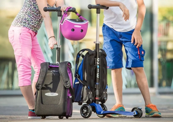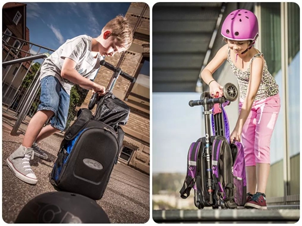 在国外,许多学龄儿童都会骑滑板车上下学,别小看节省出来的十五分钟,孩子们还可以甜甜地再做一个美梦呢。背着重重的书包骑滑板车十分不方便,新款迷嬉四合一的背包可以牢牢地扣在滑板车上,磁吸背带还能固定在背包上,让骑行者更自由顺畅地滑行。