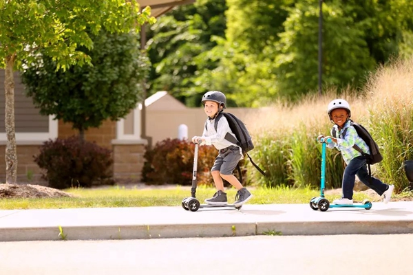 经典产品迷嬉滑板车可随意调节把手的高度,能满足孩子在5岁到12岁的使用,一个滑板车玩7年一点问题都木有~使用重力转向系统,让孩子在滑行的时候轻松转弯,很快就能上手。