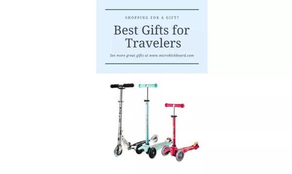带上micro滑板车的旅行很方便,因为它们轻巧便携。当你把它们放进行李时,车身相当紧凑节省空间。小一点的孩子可以选择micro mini迷你或是micro maxi迷嬉滑板车,还有折叠款的迷嬉可供选择。对于青少年和成年人,可以选择非常轻便、可折叠的sprite精灵滑板车——只有5磅重,但可以承载滑行者高达220磅的体重。