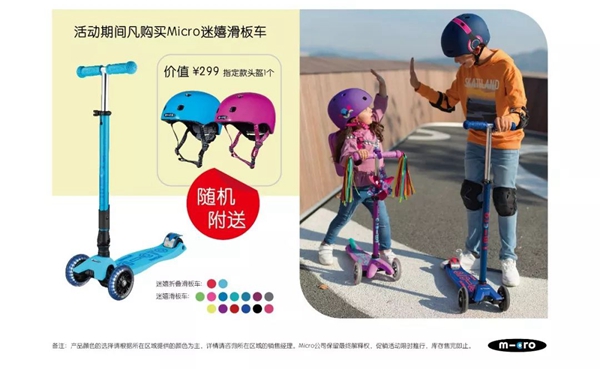 在本次的“春季安全出游 Micro为你加油”活动中,我们将免费送出儿童头盔!颜色随机,以各门店款式为准。