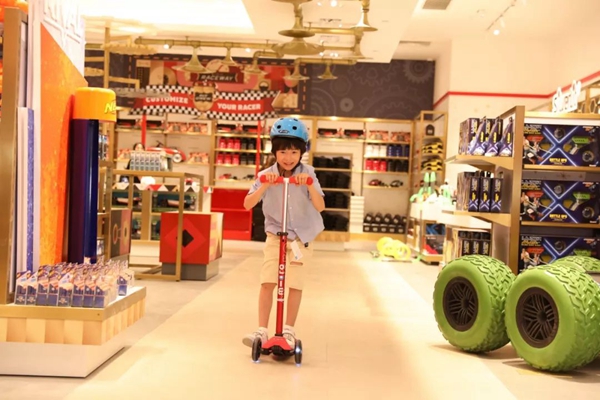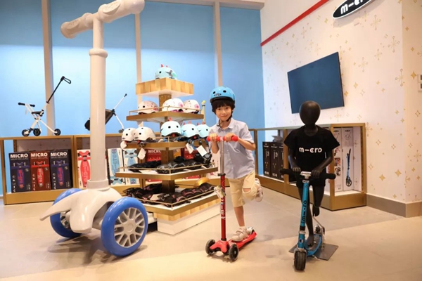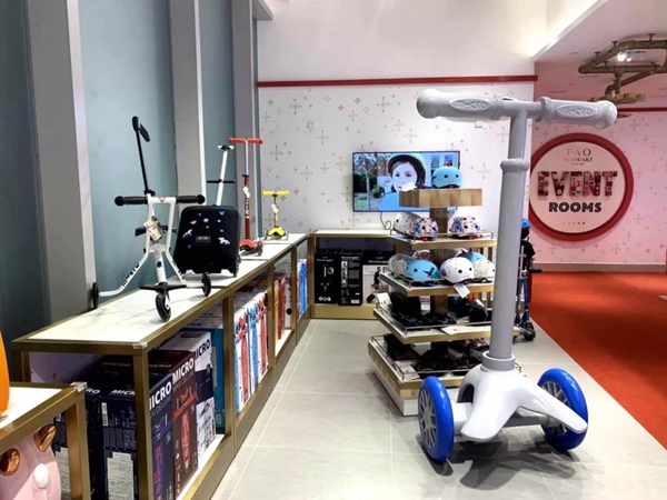来一起看看在FAO旗舰店中,micro以怎样的姿态等待着大家的到来!在micro的专属展示区中,展架以滑板车的样式呈现,十分引人注目。看,小朋友都玩得不亦乐乎呢~
