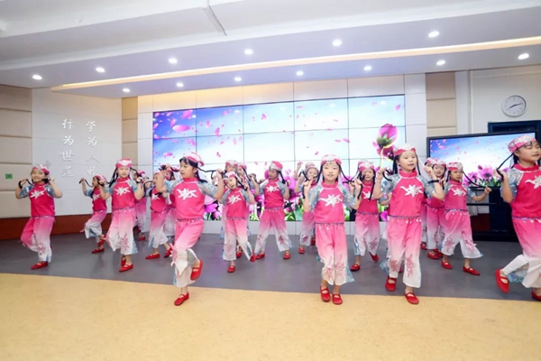 活动开始,航龙小学学生代表表演了民族节目《幸福山歌》和拉丁舞,欢迎远道而来的客人。