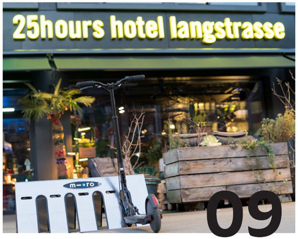 在苏黎世除了有旗舰店,micro还积极于当地其他行业企业进行跨界合作,例如位于苏黎世4. Aussersihl区的霍普巴恩霍夫25小时酒店(25hours Hotel Langstrasse)。该酒店希望为住客提供更本地化的服务,希望住客们能更深入地探索苏黎世,因此他们提供了自行车租赁服务,同时还提供免费的滑板车服务。该酒店的销售及营销经理Urs Michel表示,“客人们跟我反映他们的出行非常便利愉快,甚至将这段经历写在猫途鹰(TripAdvisor)上。我们认为micro提供的滑板车可以让住客们的体验锦上添花。”
