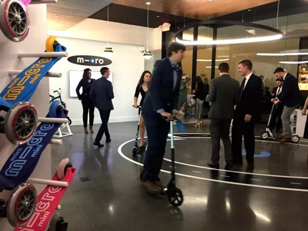 micro美国分公司负责人Julie Hawksworth表示,“我们的展厅标志着在美国,首次有一个地方可以看到micro的全系列产品。目前我们有大约40种不同型号的滑板车,为了不同的使用者而设计。