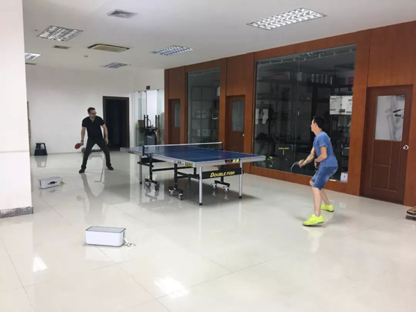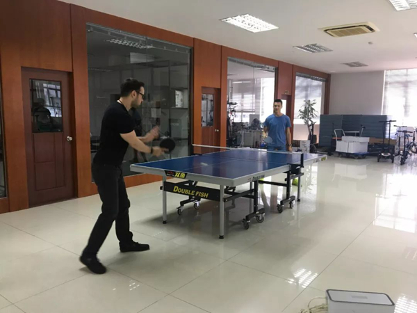 饭后稍作休息,大家会到4楼的乒乓球桌前“开战”。饭后的休闲运动可以有效消食,但不要过度噢。在乒乓球台上,可没有什么职务等级之分,大家都能融洽地玩在一起。