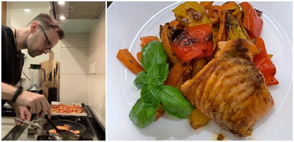 讲究健康的Julian晚餐当然也会精心搭配,他推荐的轻食包括烤三文鱼/煎鸡胸肉搭配蔬菜沙拉。晚餐之后,就会带着狗狗和滑板车进行晚间锻炼,这样的运动量估计即使是阿拉斯加犬也不会“撕家”了。