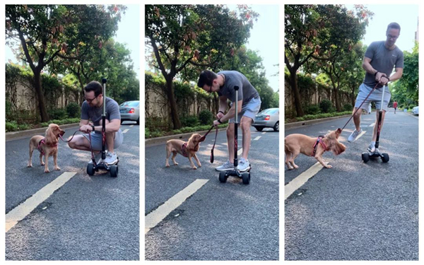 检查完邮件,Julian就会带着狗狗和micro monster魔鬼滑板车开始晨练。“我滑滑板车的时候,狗狗喜欢跟着我,因为魔鬼滑板车可以一手掌控,所以我的另一只手可以牵着绳子。”