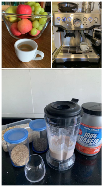 晨练完洗漱后,来到早餐时段。Julian十分注重营养健康,因此他的早餐通常是自己搭配的营养奶昔,一般包括燕麦、奇亚籽、苋菜、香蕉和蛋白粉。“这些食材可以提供锰、镁、磷、铁、抗氧物、蛋白质,还有一些其他人体所需的营养素,这会让我一整天精力充沛。”俗话说“三分练,七分吃”,看来Julian的健康身形和规律的饮食计划有密切的关系。