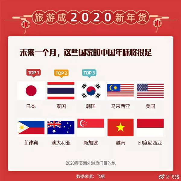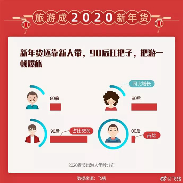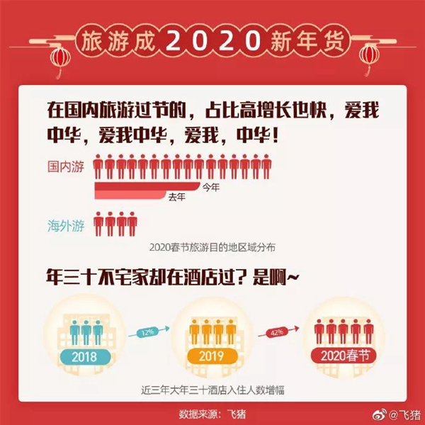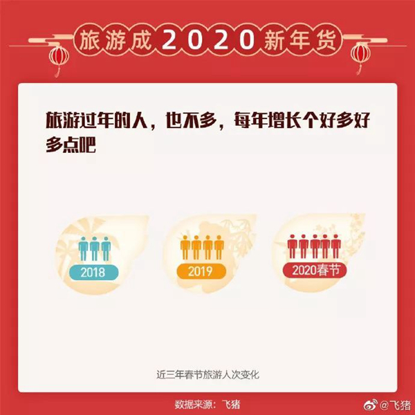 7日,阿里巴巴旗下旅行服务平台飞猪发布2020春节旅游数据报告,旅游过年连续三年增长,从买鱼买肉大扫除到机票酒店出去玩儿,旅游已经成为2020新年货。