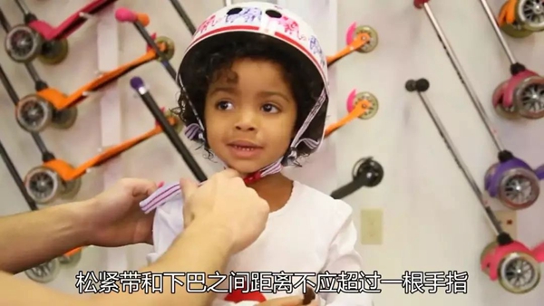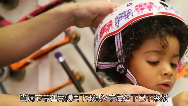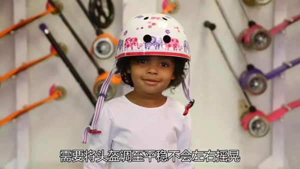 在所有的调整完成后,除了解开松紧带外,头盔应能稳稳地戴在孩子的头上,无法通过晃动甩开。