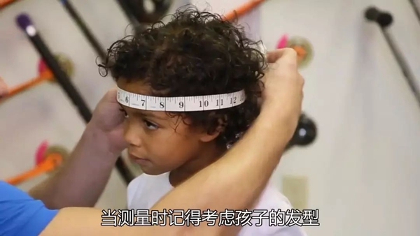 1-12岁的孩子们头围可能有巨大差异,我们见过3岁的孩子头围比9岁的哥哥还大,当然大部分时候是相反的情况。所以千万不要预估或者猜测孩子的头围,一定要多次测量以取得准确值。在测量时,用软尺围绕头部一周,位置在眉毛上方约两指处。另外,测量时也要考虑佩戴头盔时的发型,适当放宽或缩小。