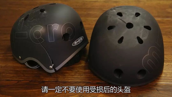 最后还有一个安全提示,当头盔被撞击出现裂痕后,应该立即更换新的头盔。旧头盔在承受撞击后已失去完整结构,无法抵挡多次撞击。因此请不要使用出现裂痕的受损头盔。