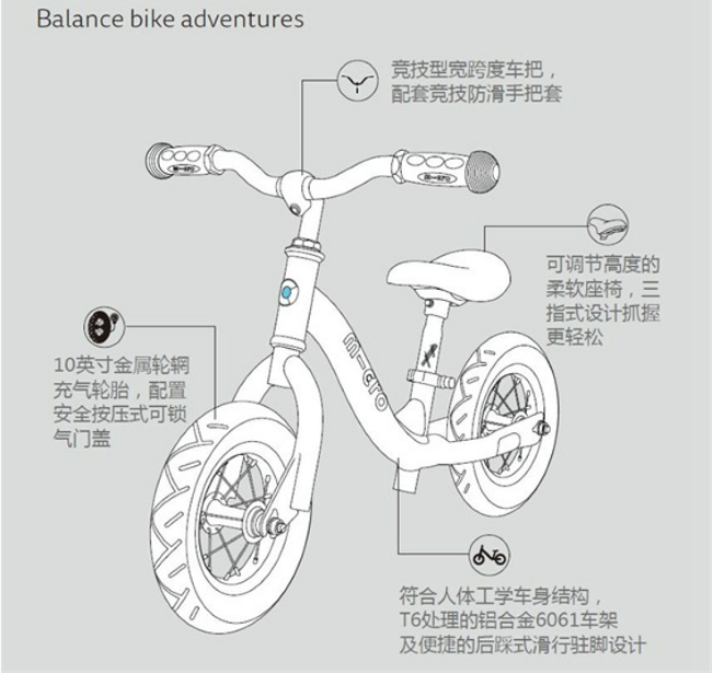在推出m-cro迈古 g-bike平衡车后,经过瑞士总部实验室的潜心研究,即将在本月隆重推出Micro Balance Bike迈古平衡车黑马款!