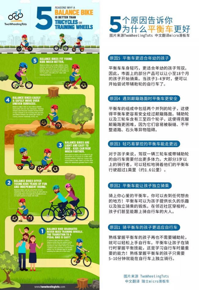 儿童平衡车是没有踏板的单车,可以让18个月以上的孩子学习如何用两轮进行平衡。儿童平衡车可以替代三轮车或者辅助轮,孩子用了平衡车之后再学骑自行车非常自然。3岁的孩子也能骑乘自行车,不需要再用辅助轮。