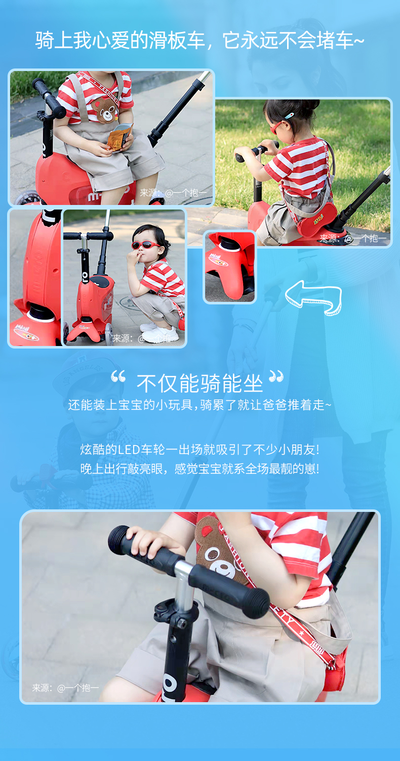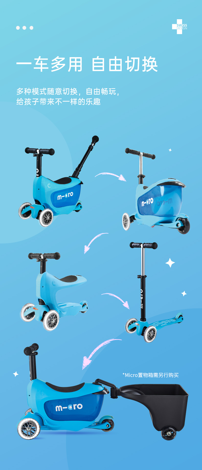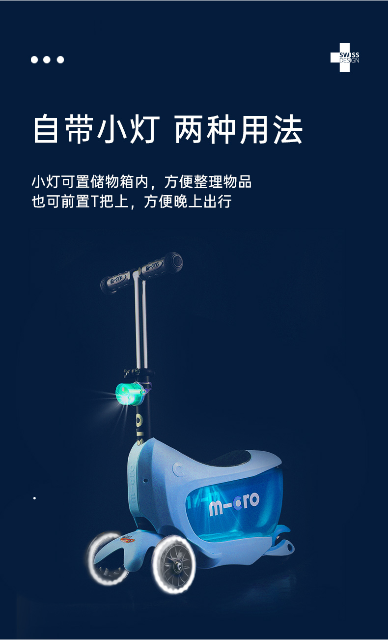 瑞士m-cro迈古4合1可坐多功能儿童滑板车带随行箱LED轮滑板车