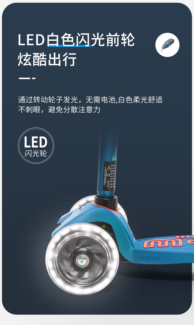 【LED车轮】瑞士m-cro迈古儿童滑板车maxi大童三轮滑板车 可调节高度轻便易携带闪光轮 蓝色