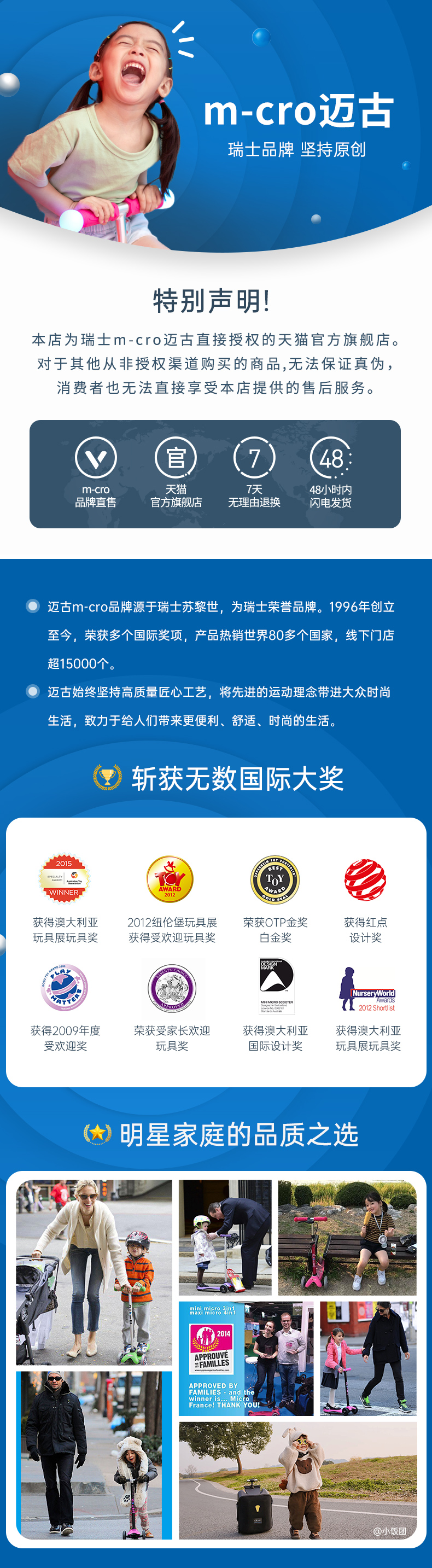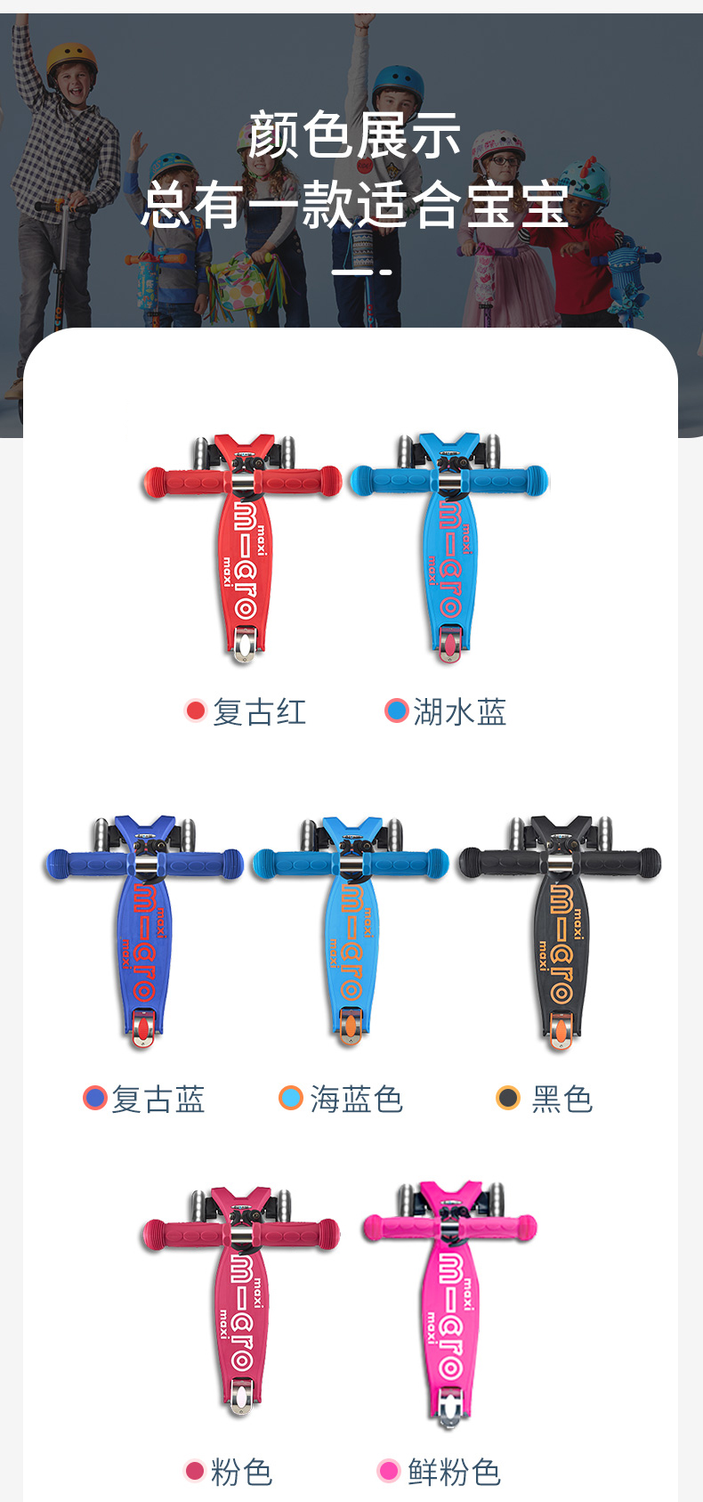 【LED车轮】瑞士m-cro迈古儿童滑板车maxi大童三轮滑板车,可调节高度,轻便易携带,闪光轮,多色。高弹力玻璃纤维踏板可承重100KG,同时还可以辅助减震保护滑行对膝盖的损伤。
