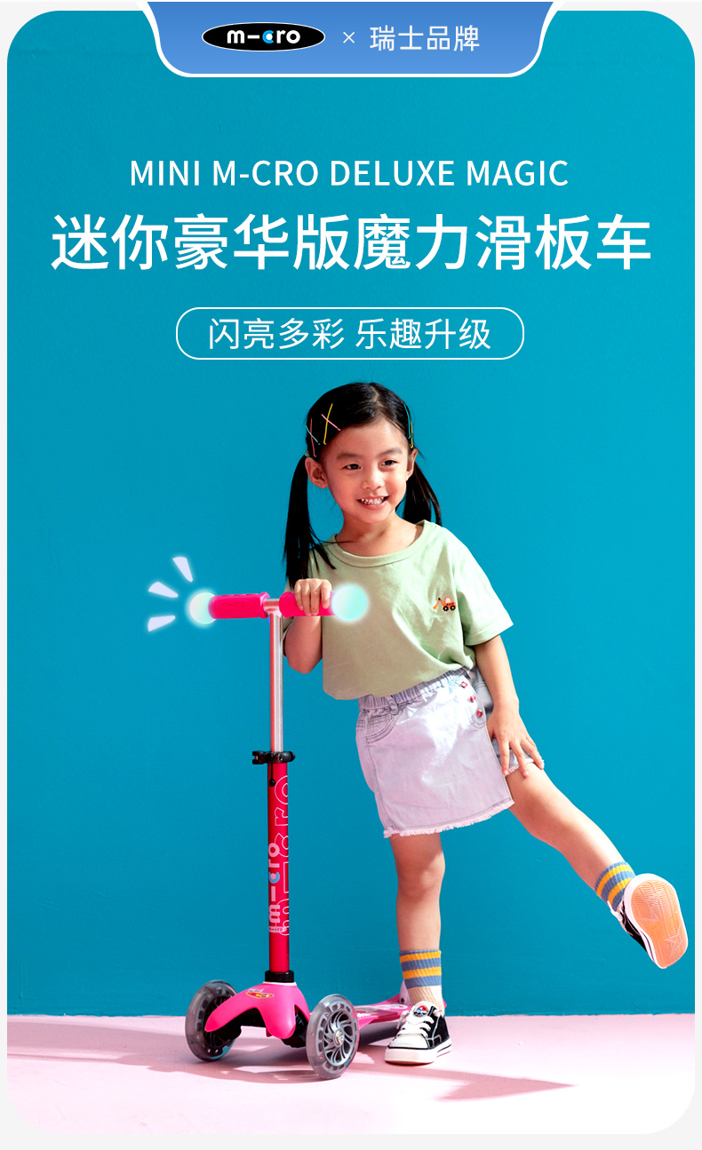 瑞士m-cro迈古儿童魔力滑板车2岁-5岁女孩男孩溜溜车初学者宝宝滑滑车