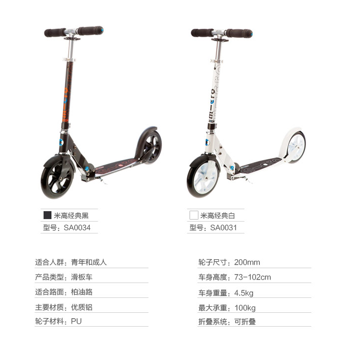 ▲瑞士micro米高黑白成人滑板车