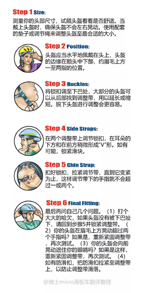 无论是骑行去上学,还是仅仅5分钟的短途滑行,或者只是在公园中练习。每一位滑行者的基本动作就是佩戴头盔,确保头盔正确佩戴十分重要,松动或是未能正确佩戴的头盔都无法提供应有的保护。如何选择与佩戴头盔请点击【视频+图解手把手教你选戴头盔】