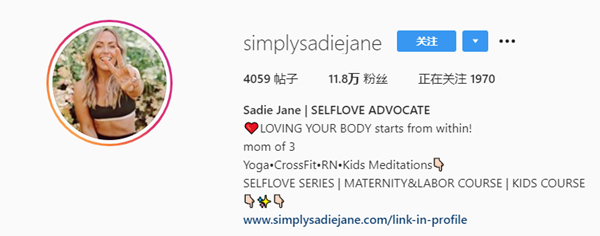 给大家做真人示范的是来自美国的健身博主Sadie Jane,她从小就被体重问题所困扰,生完孩子后220磅(99公斤)的她花了2年时间减去80磅(36公斤)。在社交网站上拥有众多粉丝的Sadie在不断的分享自己的健身心得和经验,希望能帮助更多的女性通过运动热爱自己。