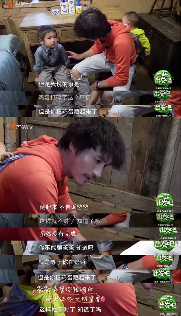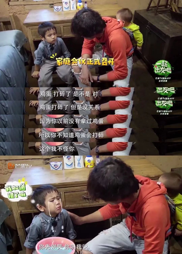 在节目中我们可以看到,每一次乐那多犯错,耿乐都会蹲下来以平视的角度把孩子当成大人,通过讲道理的“温柔攻势”让乐那多认识到自己的错误。其实孩子对情绪的感知是很敏锐的,听到爸爸的严肃语气,乐那多已经知道自己做错了。