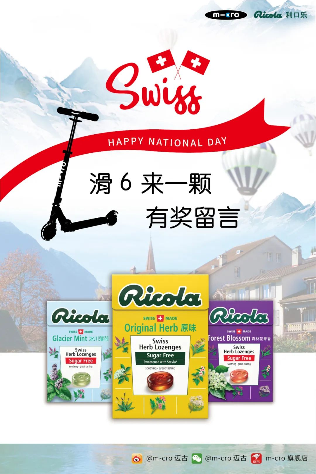 8月1日是瑞士国庆节,为了欢庆这一节日,m-cro迈古和Ricola利口乐携手为粉丝们带来福利。