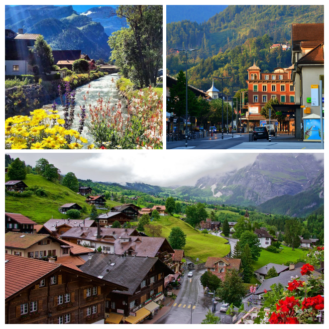 除了风景秀丽的自然景观,错落在山景中的小镇也让人心生向往,仿佛走进的童话的世界。优美的山峦环绕,油画般的森林草场,点缀着鲜花的居所,世外桃源也不过如此。
