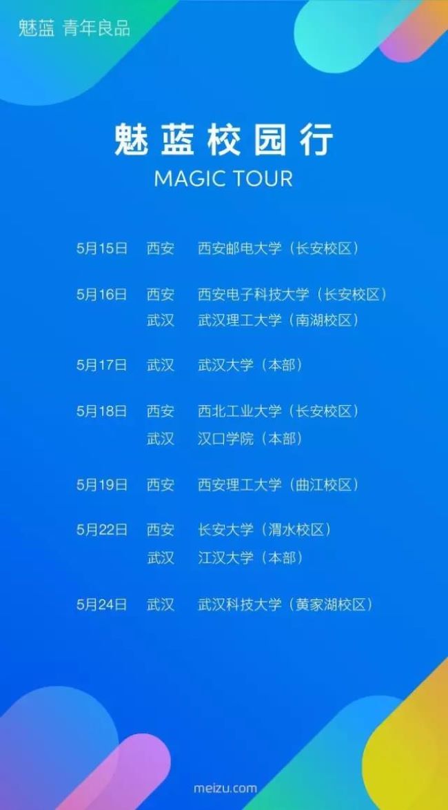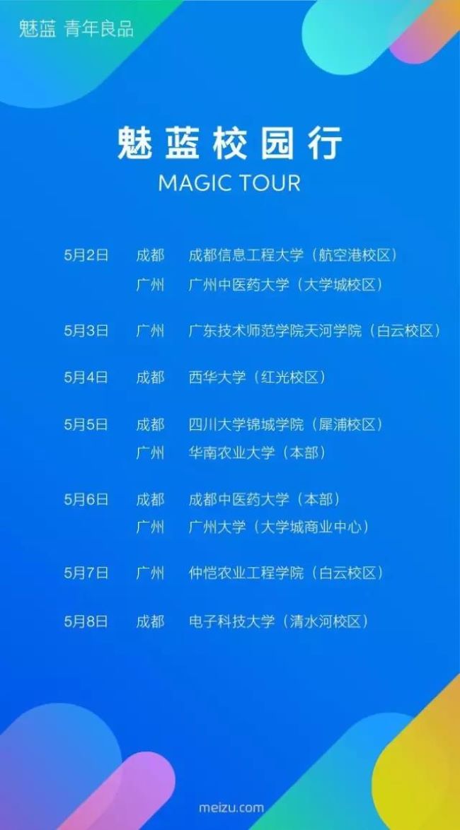 大学的活动总是多姿多彩,魅族手机作为大学生喜爱的品牌,此次在广州、武汉、成都、西安20所高校启动“魅蓝校园行”活动。炫酷的科技宿舍概念场地,瑞士m-cro迈古滑板车的时尚滑行体验,以及魅蓝E2新品校园亮相,更有魅族智能硬件体验专区,让你感受未来世界的震撼!