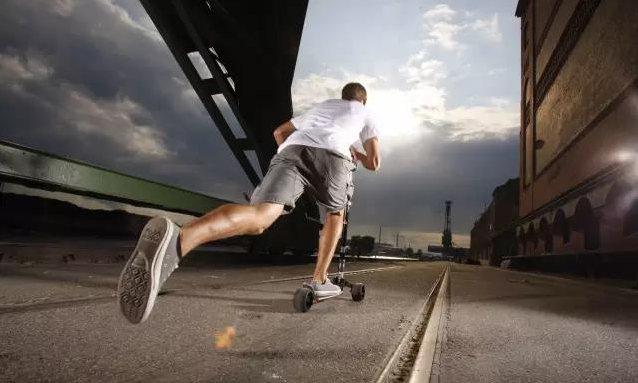 第二,滑行时一定要紧握手柄,掌握好方向,保持身体微微前倾,单脚使劲向后蹬地,在滑行顺畅之后,蹬地的那只脚可放在靠近后轮刹车盖的滑板面上,这样既可让右脚缓解一下疲劳又可在紧急情况下快速的踩定刹车。